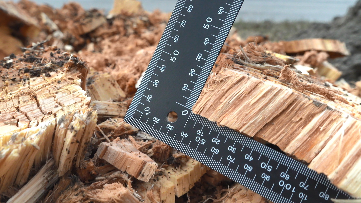 Честная скорость измельчения на всю глубину бура. Древесина разрезается пластами от 20 мм.