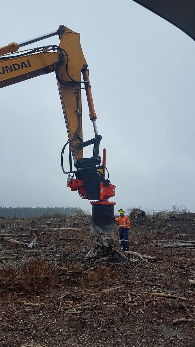 Рабочий орган бур или цилиндр в зависимости от вида работ. Бур дробит структуру пня, а цилиндр извлекает сердцевину, равную или меньшую чем