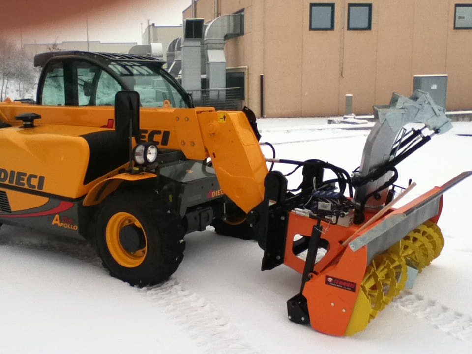 Гидравлические снегороторы исключают такие неудобства и могут крепиться на мини-экскаваторы, мини-погрузчики и другую технику. При помощи гидропотока машины-носителя осуществляется вращение фрезы и ротора, а также регулируется угол выброса снега и его дальность.