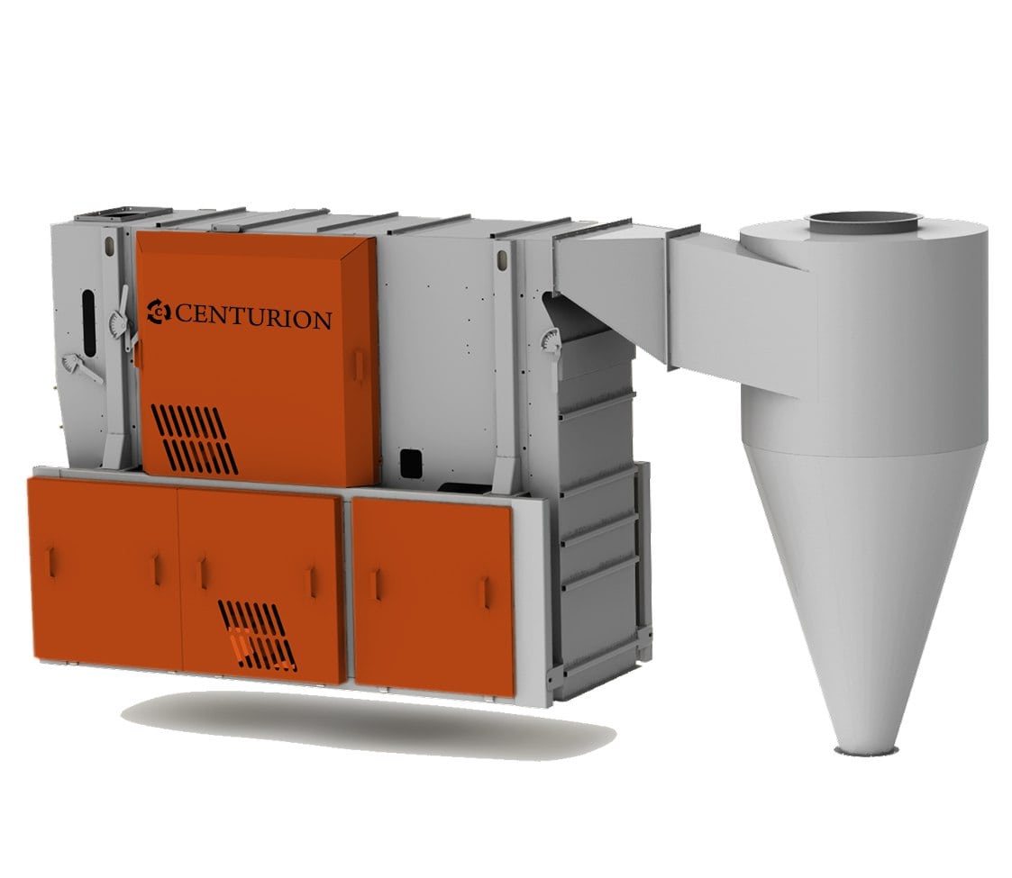 Максимально конкретизируя устройство агрегата, следует сказать, что сепаратор «Центурион» представляет собой ветро-решётный зерноочистительный комплекс совмещающий в себе метод двойной аспирации с очисткой при помощи комплекса виброрешёт, что позволяет удалить как крупный мусор, так и мелкие примеси, и полову. Такой технический подход признан наиболее эффективным, поскольку позволяет добиться высокого результата с наименьшими затратами.